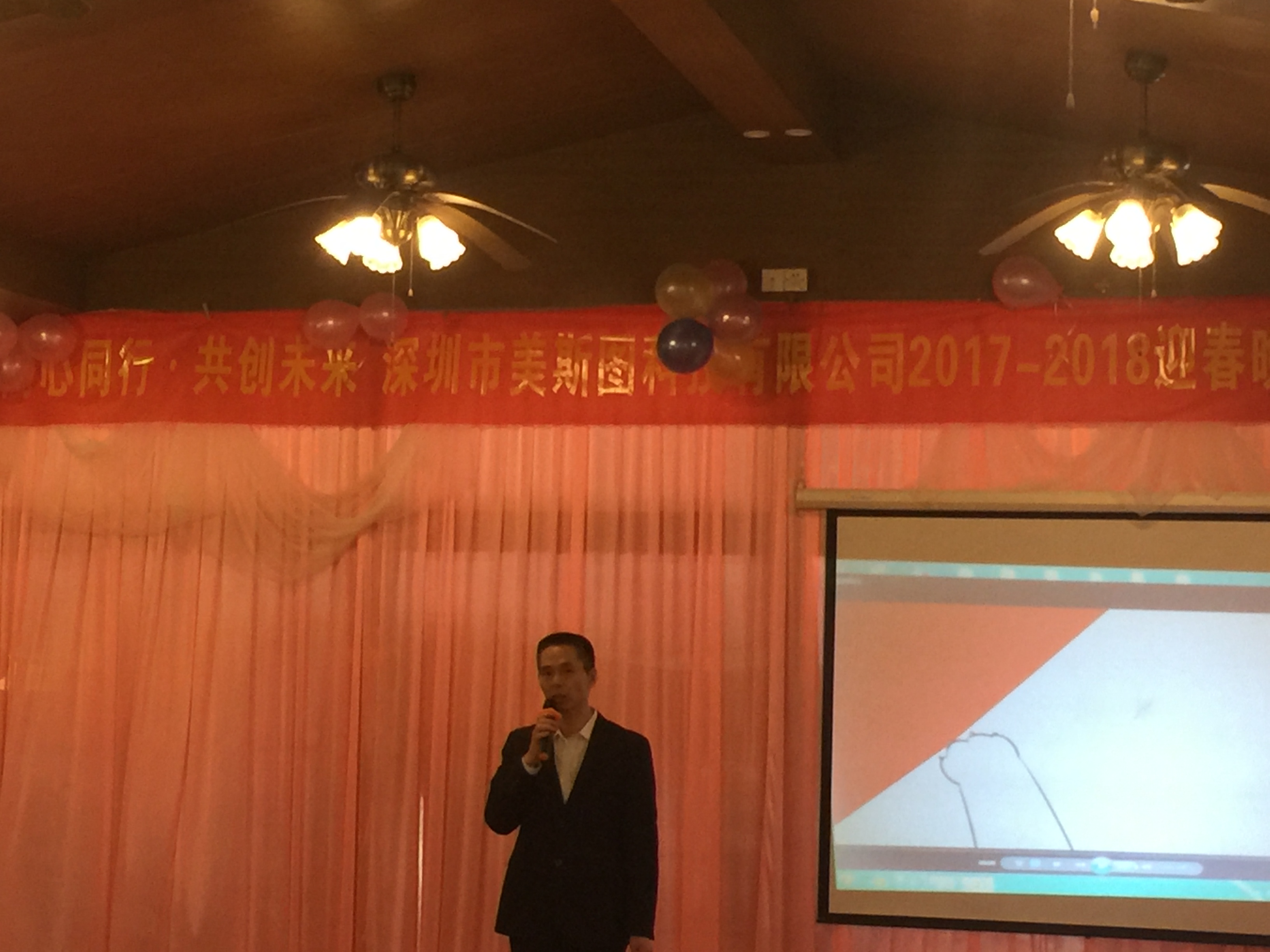 晚會開始前,董事總經理常海生先生首先登臺向全體員工致以新年的致辭,董事總經理以精簡熱情的致辭概括了美斯圖公司在2017年度所取得的各項成績,并為公司的全體員工和家人送出了美好的新年祝福。常總的講話令人振奮,也讓在坐的全體員工們激情澎湃,寄予2017年新的希望,并引起全體員工的共鳴。